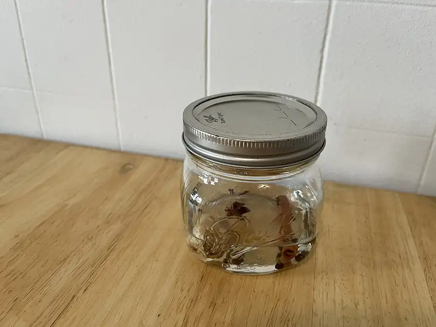 - Add vodka and spices to a jar. Allow it to infuse for 24 hours, then strain and set aside.