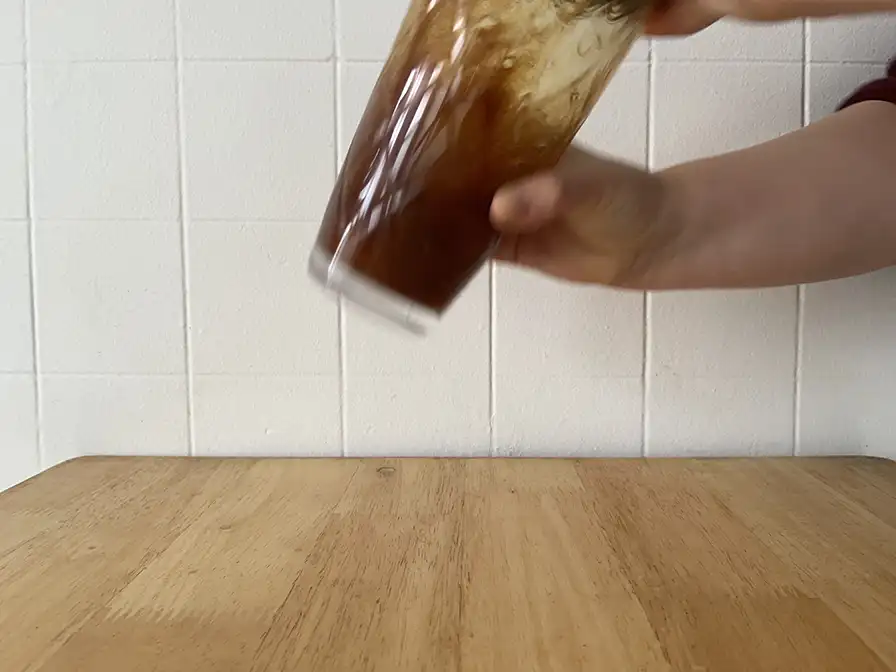 Add all your liquids and ice into a cocktail shaker, and shake to combine. A foam will form in the shaker - this is good.